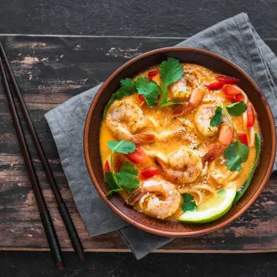 Setelah matang sempurna, udang kupas yang renyah ini akan membuat laksa Anda lebih nikmat, menambahkan kontras yang nikmat pada laksanya. kuah kelapa yang kental dan pedas serta tekstur mie dan sayuran yang beragam.